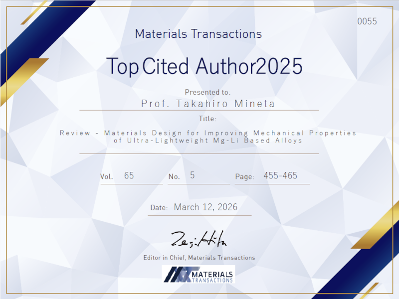 雑誌名:Materials Transactions