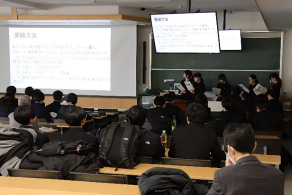 令和7年12月13日(土),理工学部を会場に『第26回青森県高等学校理数系課題研究発表会』が開催され,五所川原高校理数科1・2年生,三本木高校GSCクラス1・2年生,青森高校1・2年生,3校の校長及び関係教職員が来学しました。